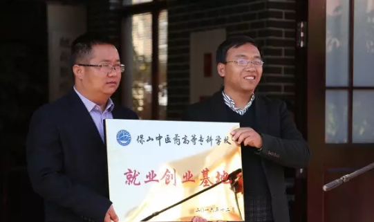 講話完畢,保山醫(yī)專李智輝副校長將寫有“實訓(xùn)實習(xí)基地”和“創(chuàng)業(yè)就業(yè)基地”的牌子授予恒益集團,標(biāo)志著恒益集團與保山醫(yī)專的校企合作正式開始。隨后,彭安強主任、李智輝副校長、李茂達館長三人共同為恒益東山中醫(yī)診所揭牌,標(biāo)志著恒益集團在康養(yǎng)領(lǐng)域又邁出了新的一步。