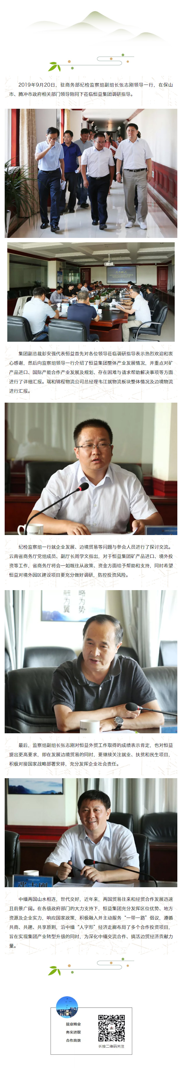 商務(wù)部紀(jì)檢監(jiān)察穩(wěn)外貿(mào)調(diào)研組蒞臨恒益集團調(diào)研 來源: 瀏覽量:7450 日期:2019-09-23 分享到: 上一篇:第3期老撾瑯勃拉邦等6省黨政干部培訓(xùn)班蒞臨高黎貢文化創(chuàng)意園區(qū)參觀考察 下一篇:恒益集團組織召開2020年全面預(yù)算編制啟動及培訓(xùn)會