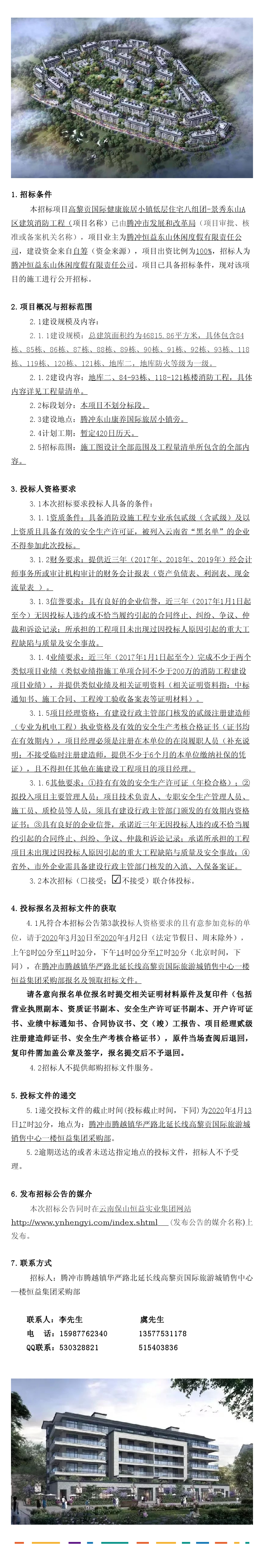 高黎貢國際健康旅居小鎮(zhèn)低層住宅八組團——景秀東山A區(qū)建筑消防工程施工招標(biāo)公告 來源: 瀏覽量:8937 日期:2020-03-30 分享到: 上一篇:騰沖市恒益礦產(chǎn)品經(jīng)貿(mào)有限責(zé)任公司關(guān)于鋅精礦競價銷售公告(202001)號 下一篇:高黎貢國際健康旅居小鎮(zhèn)低層住宅八組團江山小院室外市政工程施工招標(biāo)公告