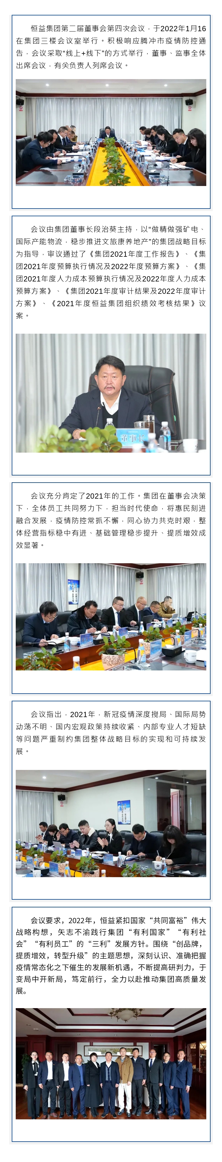 恒益集團第二屆董事會第四次會議舉行 來源: 瀏覽量:4486 日期:2022-02-24 分享到: 上一篇:云南保山恒益實業(yè)集團與廣西北部灣國際港務集團簽訂戰(zhàn)略合作協(xié)議 下一篇:恒益集團文旅康養(yǎng)地產板塊部分中層干部公開競聘會議順利召開