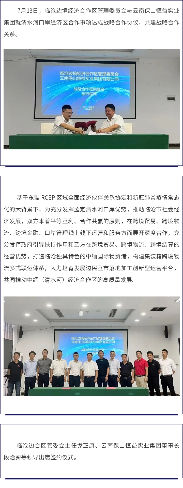 臨滄邊合區(qū)管委會與恒益集團簽署戰(zhàn)略合作協(xié)議 來源: 瀏覽量:4521 日期:2022-07-18 分享到: 上一篇:增技興農(nóng)助發(fā)展——中國工程院院士朱蓓薇一行蒞臨恒益農(nóng)業(yè)調(diào)研指導 下一篇:政企攜手促合作 同頻共振謀發(fā)展丨景洪市人民政府與恒益集團簽署戰(zhàn)略合作協(xié)議