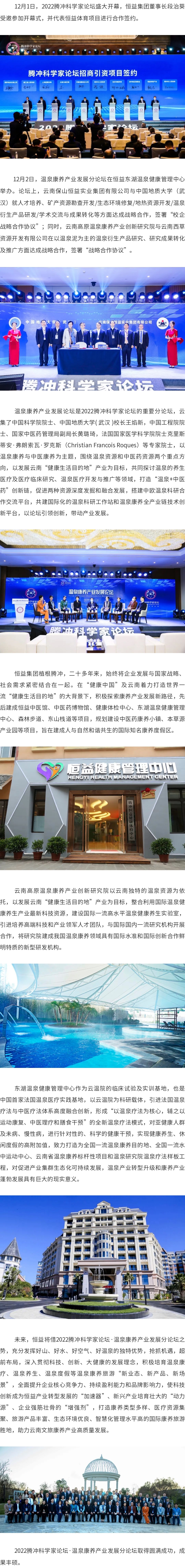 2022騰沖科學(xué)家論壇·溫泉康養(yǎng)產(chǎn)業(yè)發(fā)展分論壇成果豐碩 來源: 瀏覽量:4275 日期:2022-12-02 分享到: 上一篇:做計(jì)劃、定目標(biāo)、管預(yù)算、考績效、打勝仗——恒益集團(tuán)2023年度經(jīng)營計(jì)劃研討會順利舉行 下一篇:匯聚“區(qū)縣”發(fā)展新動能,共啟對外開放新征程