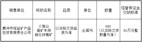騰沖市恒益礦產(chǎn)品經(jīng)貿(mào)有限責(zé)任公司關(guān)于鋅精礦競(jìng)價(jià)銷售公告(202307)號(hào)