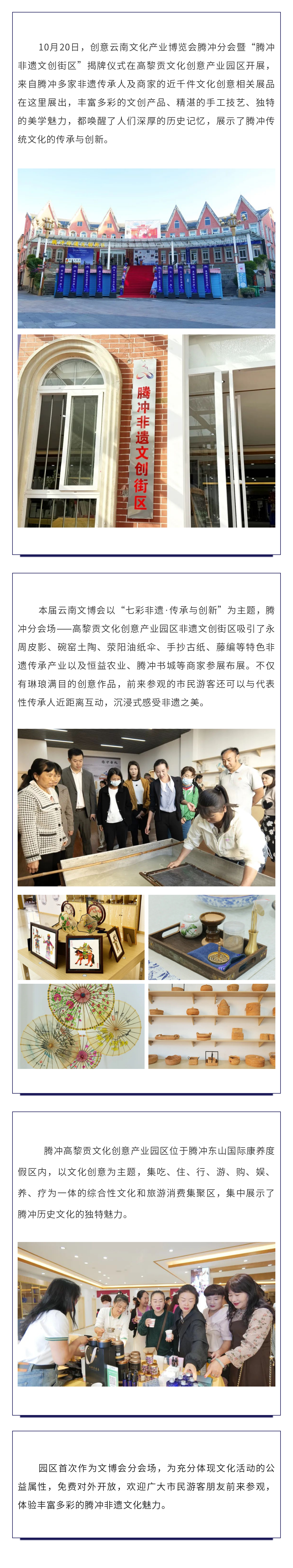 云南文博會,高黎貢文化創(chuàng)意產(chǎn)業(yè)園區(qū)展現(xiàn)騰沖多彩非遺文化 來源: 瀏覽量:2925 日期:2023-10-20 分享到: 上一篇:保山市綠色生物醫(yī)藥產(chǎn)業(yè)鏈群專班蒞臨恒益農(nóng)業(yè)食品加工園調(diào)研 下一篇:直播預熱丨文博會分會場,相約騰沖高黎貢文化創(chuàng)意產(chǎn)業(yè)園區(qū)