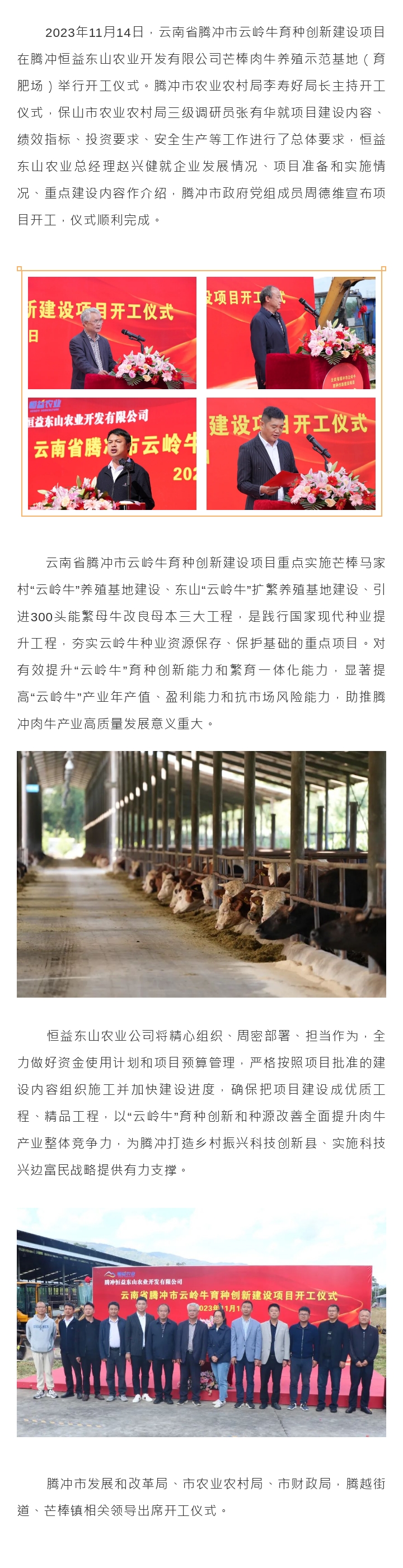 云南省騰沖市云嶺牛育種創(chuàng)新建設(shè)項目正式開工 來源: 瀏覽量:2968 日期:2023-11-14 分享到: 上一篇:騰馬激情開跑,恒益健兒展風(fēng)采 下一篇:騰沖市恒益礦產(chǎn)品經(jīng)貿(mào)有限責(zé)任公司滇灘鐵礦東排土場建設(shè)項目環(huán)境影響報告書公眾參與第一次信息公示
