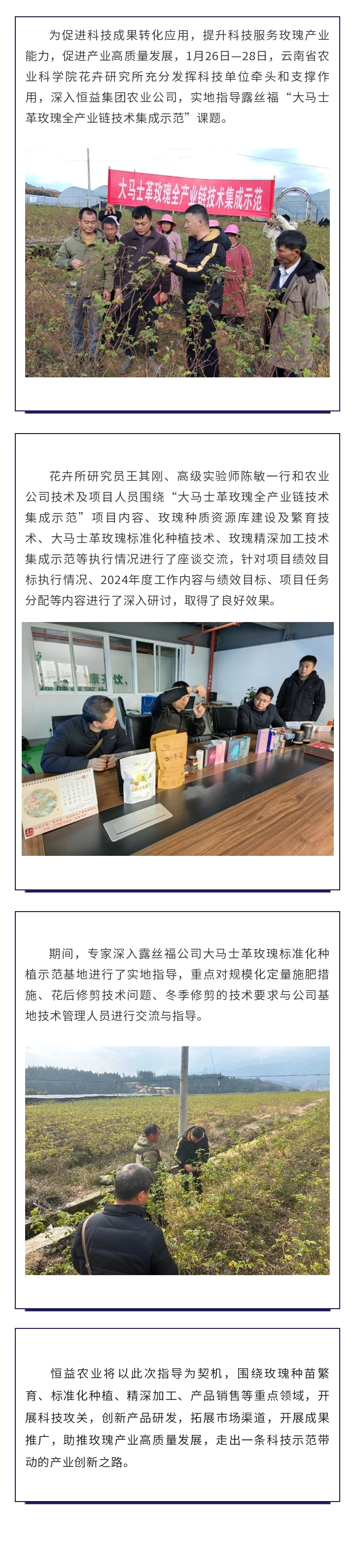 花卉所科技人員指導(dǎo)露絲福公司開(kāi)展鄉(xiāng)村振興科技創(chuàng)新縣——大馬士革玫瑰全產(chǎn)業(yè)鏈技術(shù)集成課題 來(lái)源: 瀏覽量:2774 日期:2024-01-30 分享到: 上一篇:強(qiáng)強(qiáng)聯(lián)合集聚發(fā)展效能 合作共贏助力產(chǎn)業(yè)騰飛 下一篇:新春送祝福,關(guān)懷暖人心丨中共騰沖市委書(shū)記馬子興率隊(duì)到恒益集團(tuán)開(kāi)展春節(jié)慰問(wèn)