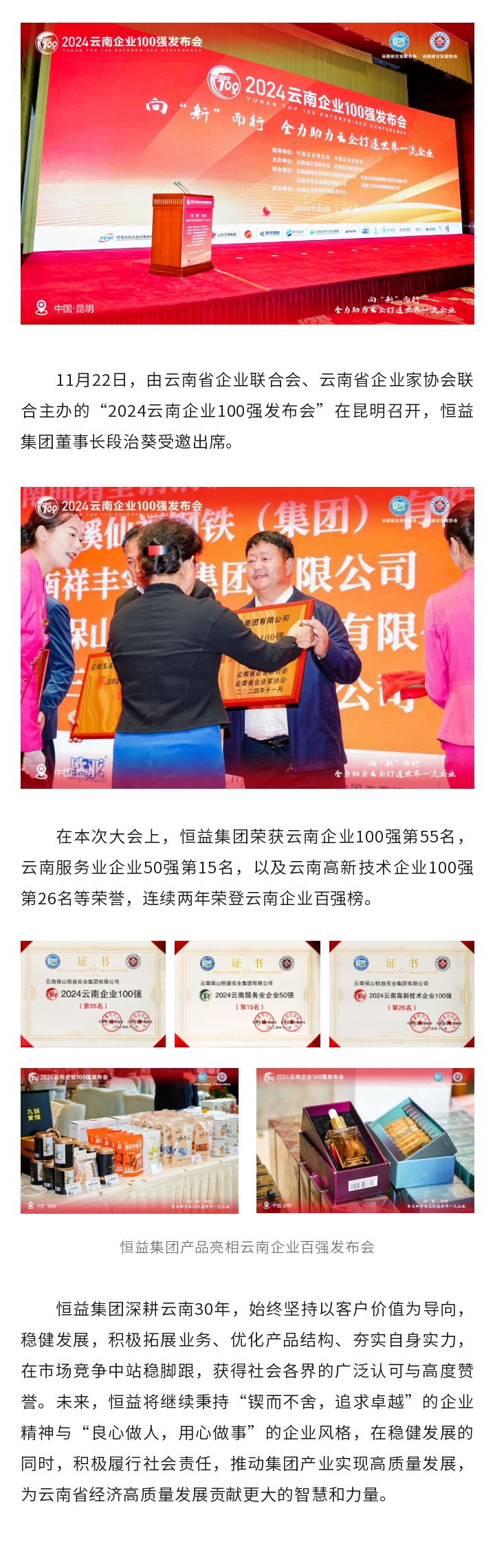 喜訊!恒益集團(tuán)獲得“2024云南企業(yè)100強(qiáng)”等多項(xiàng)榮譽(yù)獎(jiǎng)項(xiàng) 來(lái)源: 瀏覽量:2075 日期:2024-11-25 分享到: 上一篇:恒益礦業(yè)滇灘鐵礦成功入選云南省省級(jí)綠色礦山名錄 下一篇:恒以致遠(yuǎn) 踔厲奮發(fā)丨恒益“績(jī)效之星”(第四期):農(nóng)業(yè)生鮮事業(yè)部與職能中心
