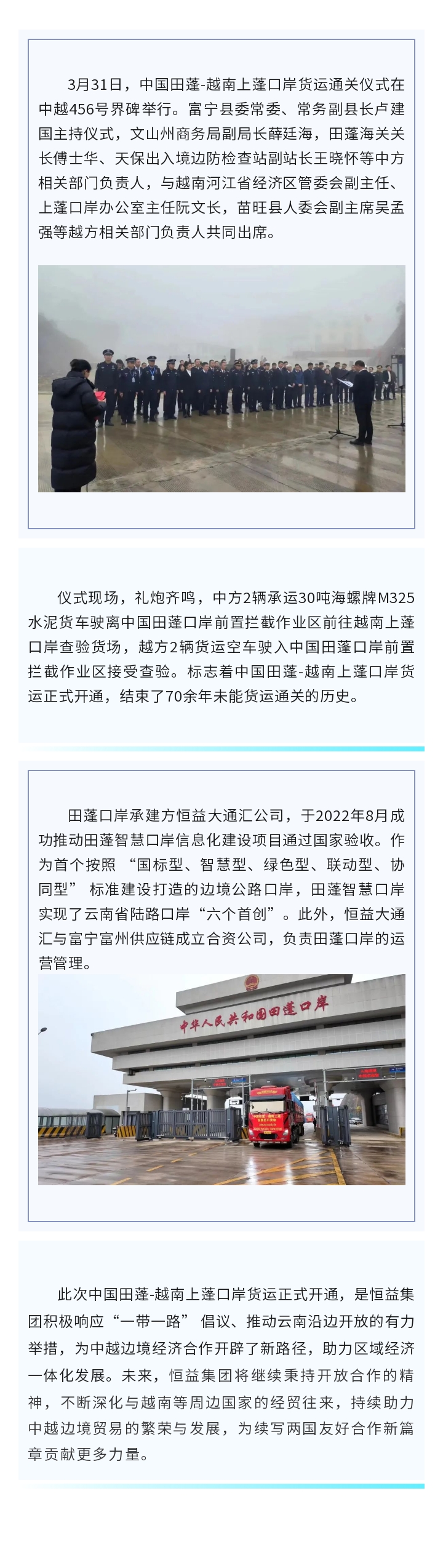 中國田蓬-越南上蓬口岸貨運正式開通 來源: 瀏覽量:498 日期:2025-04-01 分享到: 上一篇:騰沖翡翠博物館舉辦《“翡翠”一詞的來歷》 專題翡翠文化公益論壇 下一篇:政企攜手繪藍圖 林下經(jīng)濟助振興